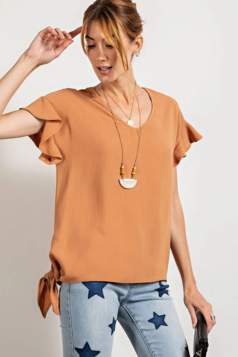 Rounded Neckline 3/4 Sleeves Washed Top Bargain Buzz