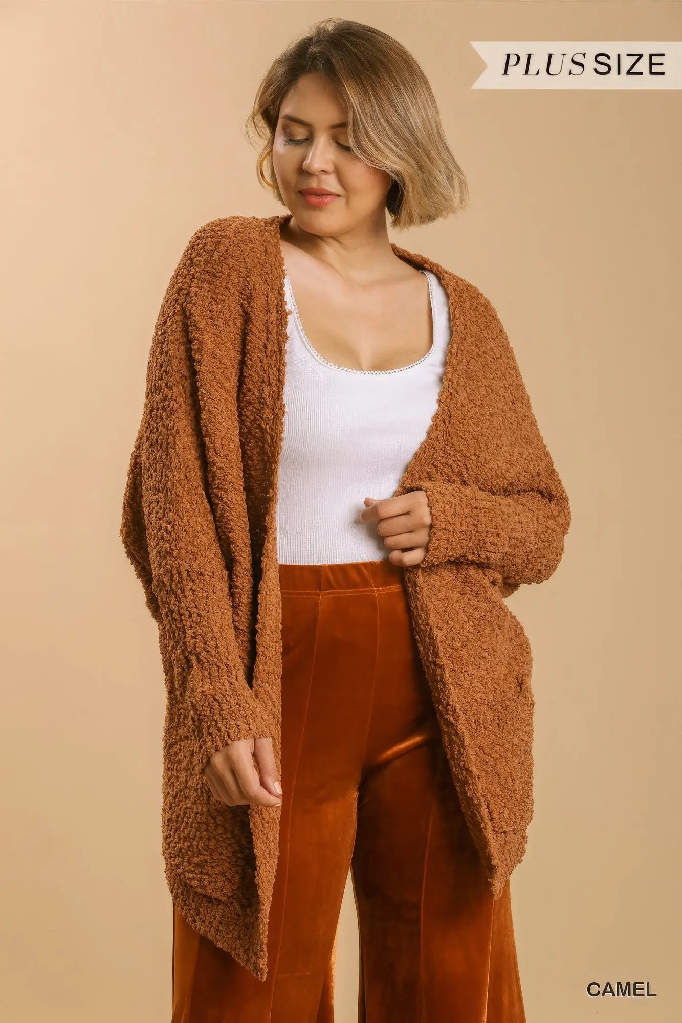 Introducing our Open Front Oversized Cardigan Sweater with Pockets, a must-have addition to your wardrobe. Crafted for both style and comfort, this cardigan is designed to elevate your fashion game.