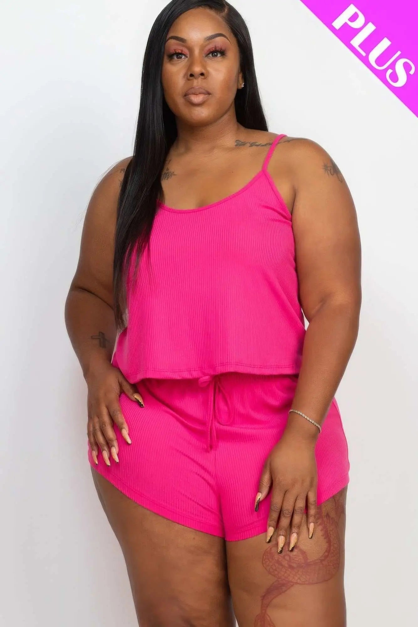 Elevate your style and comfort with the Plus Ribbed Strappy Top and Shorts Set in Black. Add it to your cart now and experience the perfect blend of fashion and functionality!