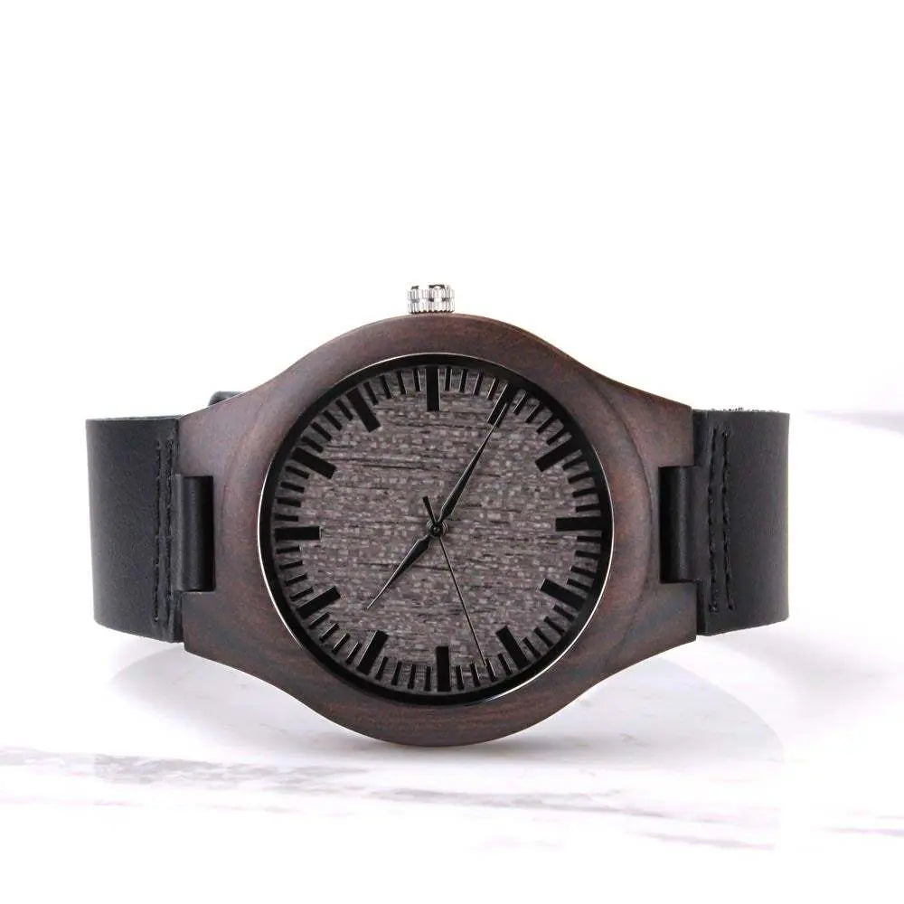 Looking for a gift as bold and timeless as your special guy? The Engraved Wooden Watch is a versatile accessory that's perfect for stylish, everyday wear. Encased in rich sandalwood and paired with a genuine leather strap, this piece is as impressive as the man who wears it. So whether it's a thoughtful birthday gift, an anniversary memento, or a long-lasting keepsake for Father's Day - be sure to get him the gift that will warm his heart for years to come. Ships in a gift box - so it can be sent directly to your lucky recipient.