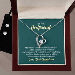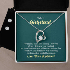 Give your loved one a gift that will make their heart swell! The Forever Love Necklace and Cubic Zirconia Earring Set is sure to do the trick.  This necklace and earring pairing provides dazzling sparkle when worn together or separately, and is perfect for any occasion! Do not miss out on this special offering!
