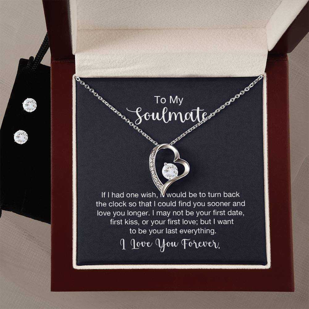 Give your loved one a gift that will make their heart swell! The Forever Love Necklace and Cubic Zirconia Earring Set is sure to do the trick.  This necklace and earring pairing provides dazzling sparkle when worn together or separately, and is perfect for any occasion! Do not miss out on this special offering!