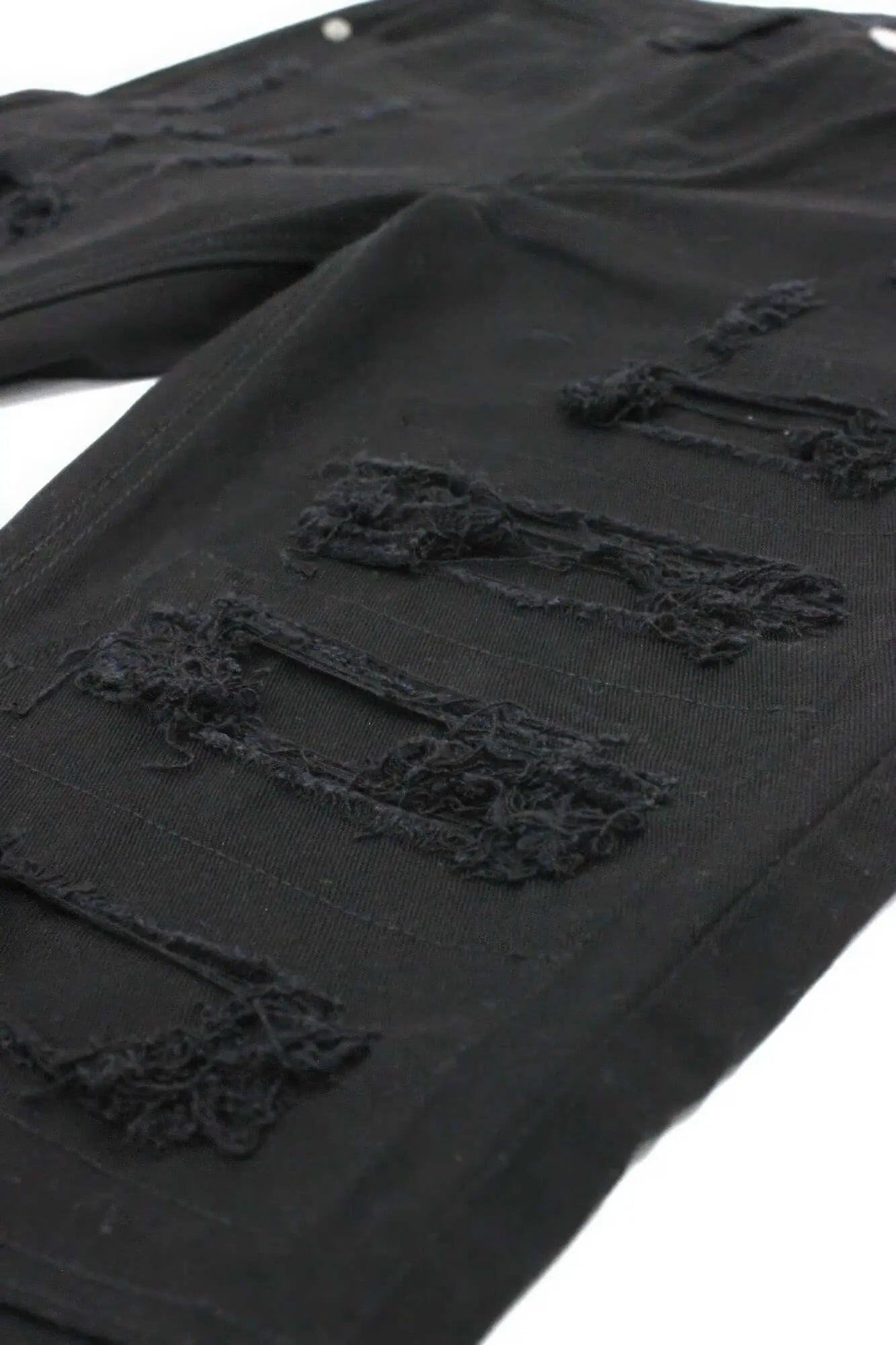 - Design: Includes a classic zip fly closure, 5-pocket design, and distressing with self-backing fabric for a contemporary look